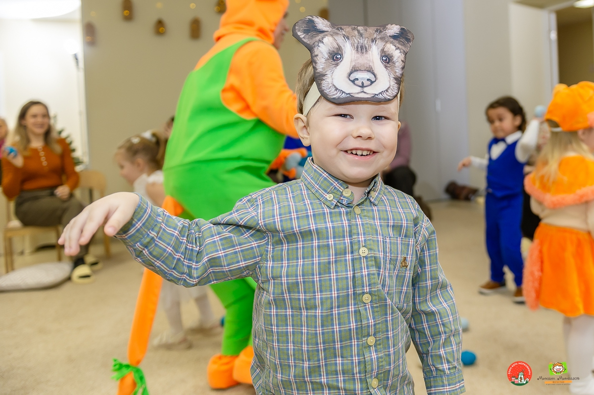 По Сказочному лесу малышей сопроводят Кот Морковкин и его добрые друзья — ребята помогут зверюшкам спасти срывающийся праздник и найти потерявшегося Деда Мороза! В программе множество веселых игр, танцы, песни, хороводы и, конечно, приятные подарки!Уютная и комфортная обстановка – на мероприятии до 9 детей!