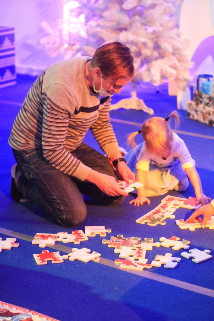 Здесь можно валяться в подушках, кататься с горки и собирать пазлы! Играть со снежными шарами и придумывать самому ворох своих сказок и игр!