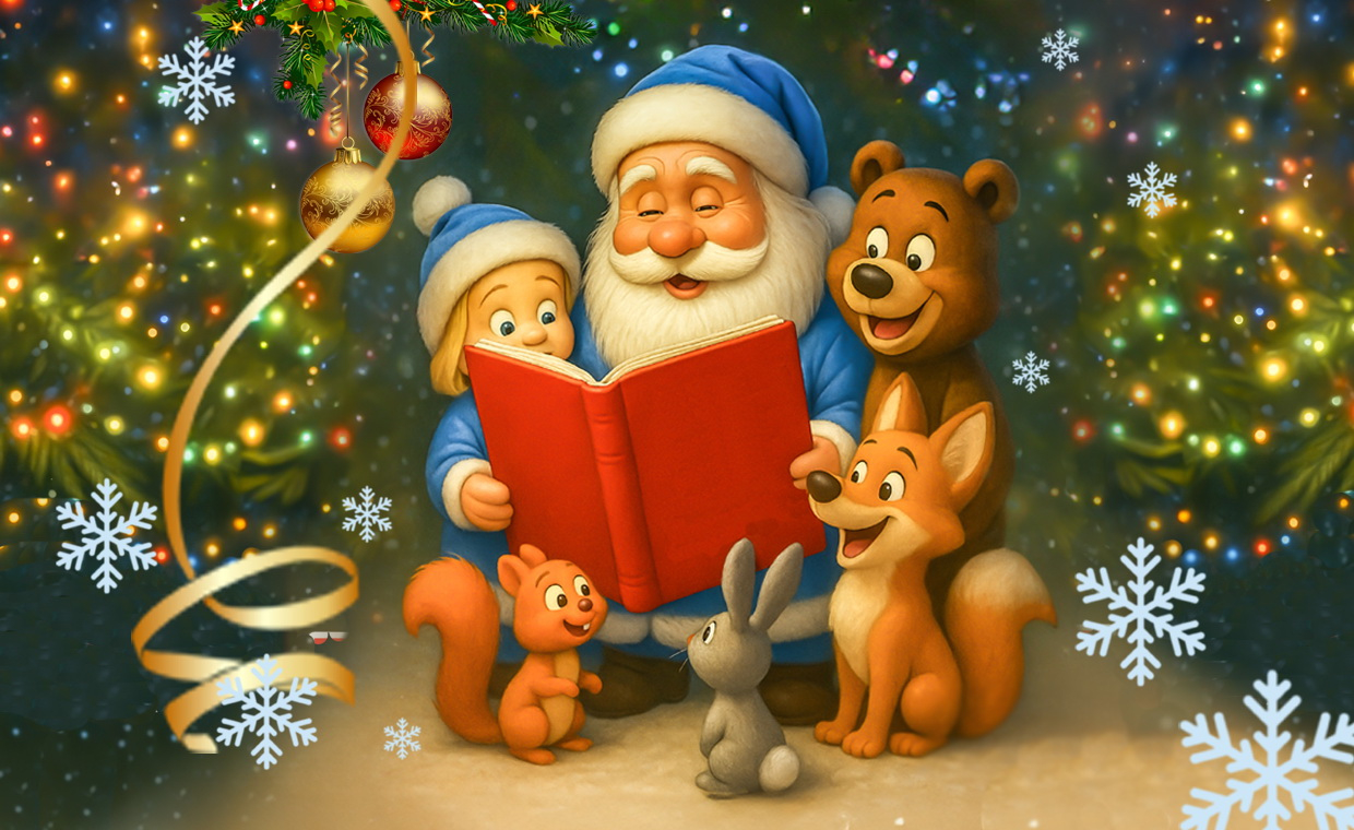 Продолжение новогодней истории в анимационной программе с играми, персонажами и эстрадным ансамблем "Капельки" и главным волшебником Дедом Морозом.