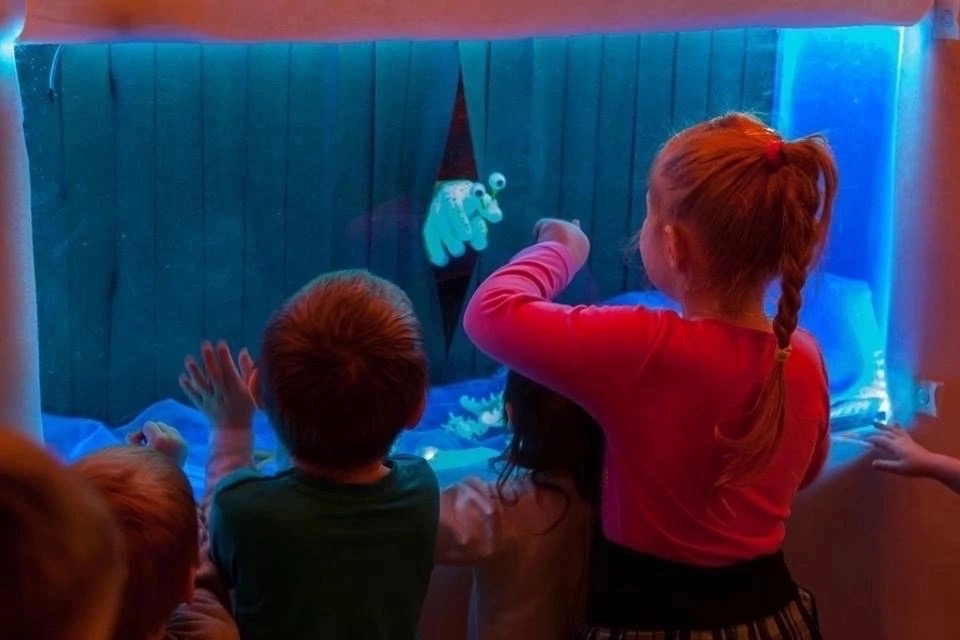 Спектакль «Вода» начинается с настоящего теплого летнего дождя! Мы строим корабли, делаем теплые южные моря и отправляемся в летнее морское путешествие. Уникальность спектакля заключается в том, что в нем используется настоящая вода!
