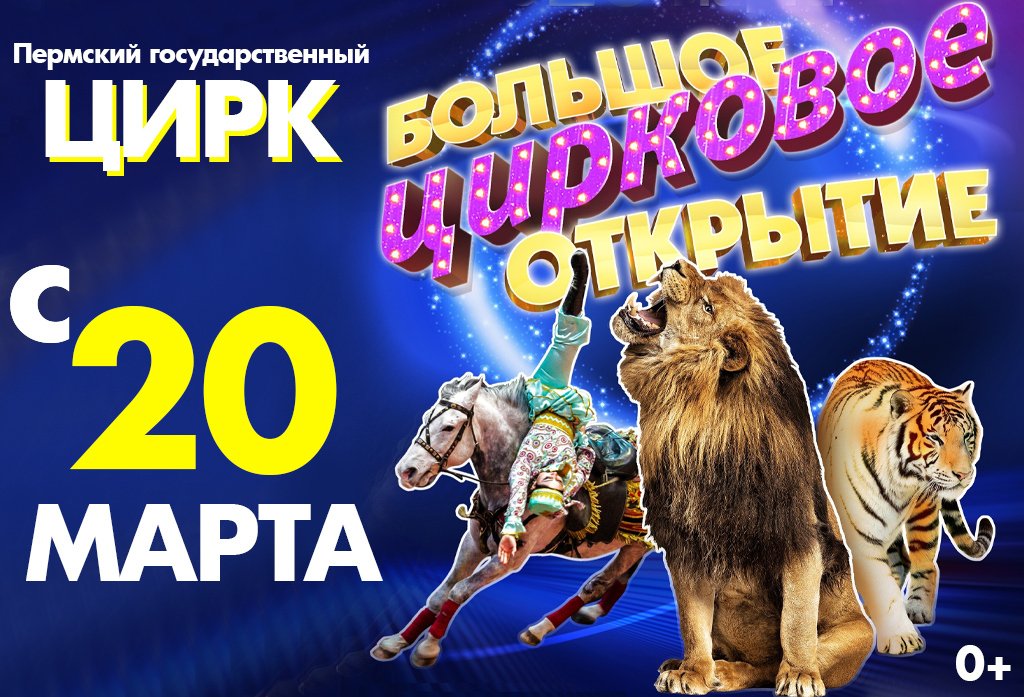 Весенняя премьера в Пермском цирке! Казанский цирк представляет новую яркую и незабываемую программу «Большое цирковое открытие». Головокружительные и захватывающие трюки, адреналин эмоций и чувств продемонстрируют акробаты на подкидных досках, воздушные гимнасты на бамбуке, бесстрашные джигиты, эквилибристы, гимнасты на мачте, жонглёры и добрые весёлые клоуны. Удивят зрителей своим мастерством и умениями ловкие кошки и грациозные лошади. В программе также принимает участие один из самых молодых дрессировщиков Ростислав Гаврылив и его прайд больших, красивых и изящных кошек. Впервые на манеже Пермского цирка состоится дебют молодых тигров Кенди, Фенди и Микки.