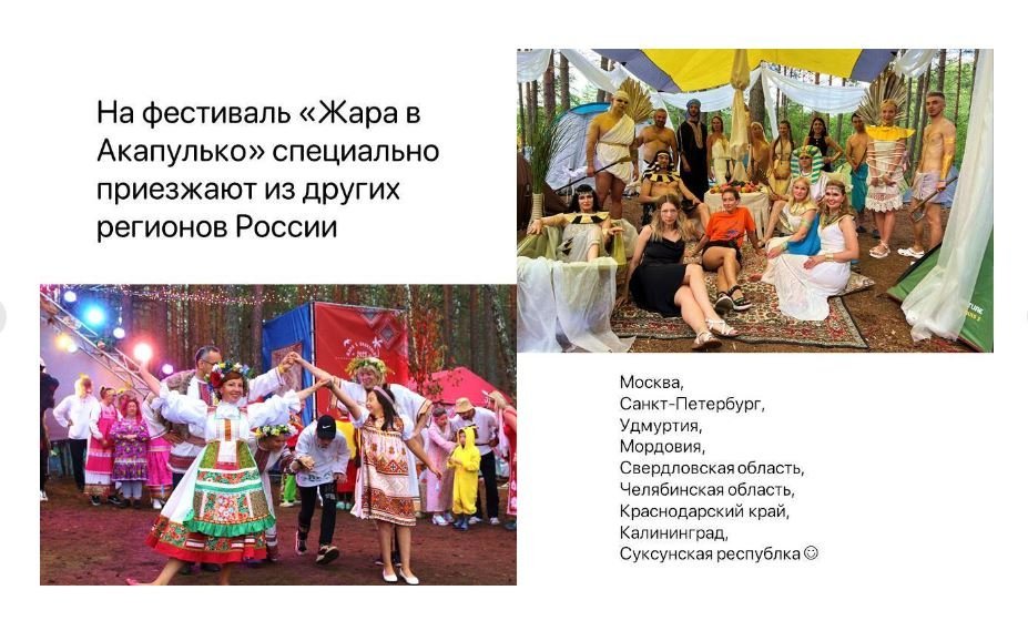 Что ещё можно делать на Жаре в Акапулько 2024: смотреть на творчество людей, украшать свой лагерь, разглядывать песчинки, греясь в лучах солнца на дивном пляже, чувствовать прохладу речной воды, бродя босиком по прибрежной полосе, считать сколько оттенков красного и желтого ты способен различать, любуясь рассветами и закатами, напитываться энергией радости и благодарности, чтобы пережить холодную уральскую зиму и дождаться следующей Акапульки с новой темой, но старыми друзьями.